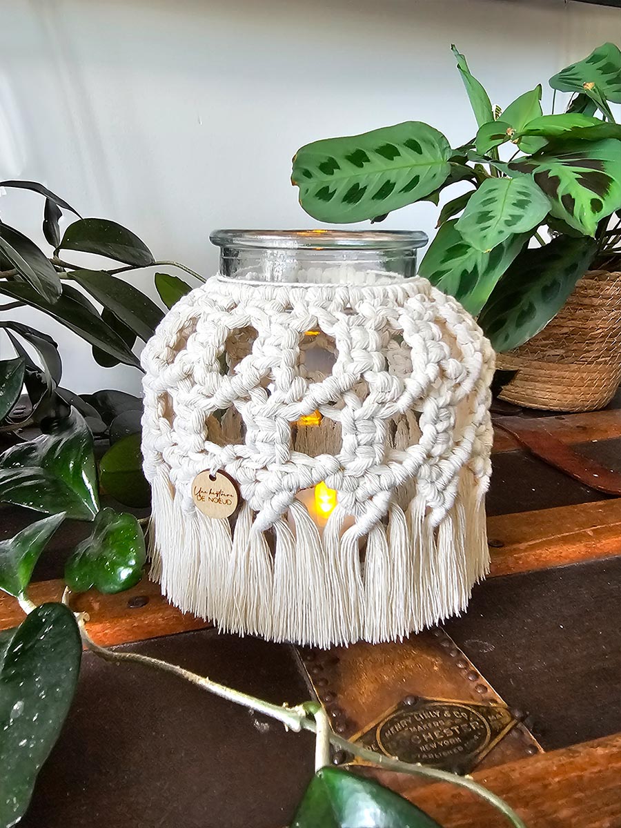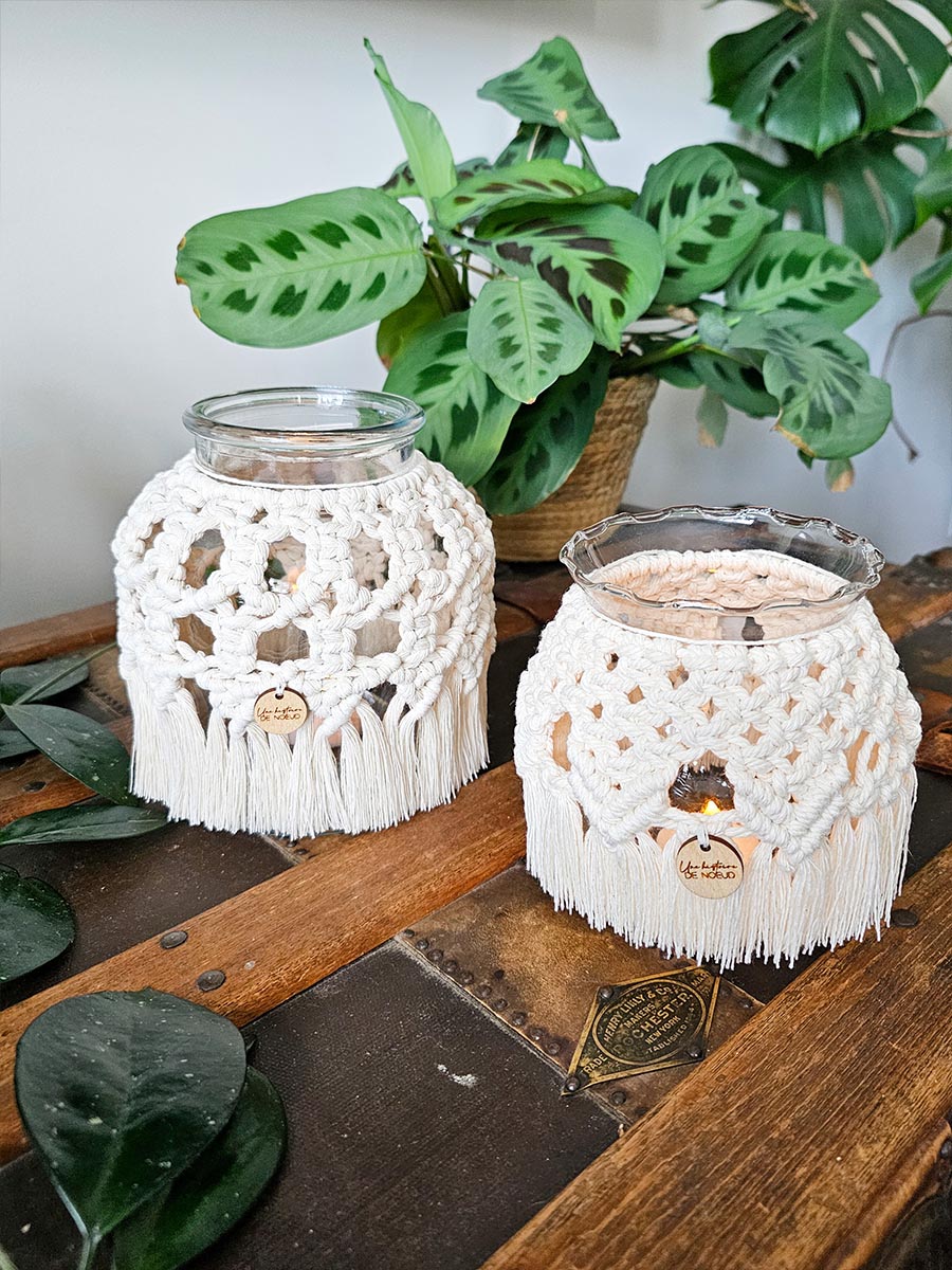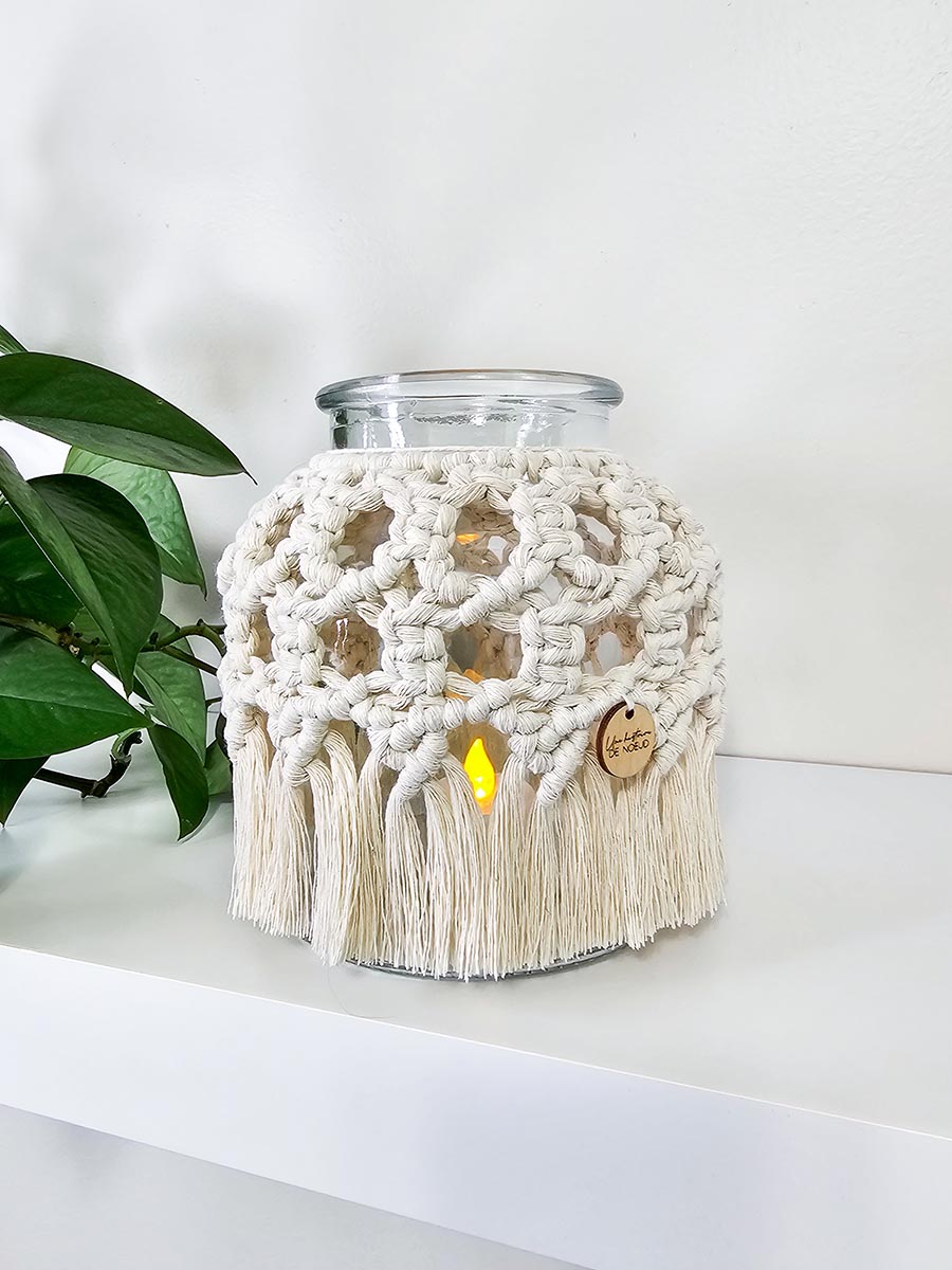 Tu tomberas sous le charme de ce magnifique vase et sa décoration de macramé fait à la main. Avec sa belle couleur naturel, il sera un apportera douceur à ta pièce. ✨